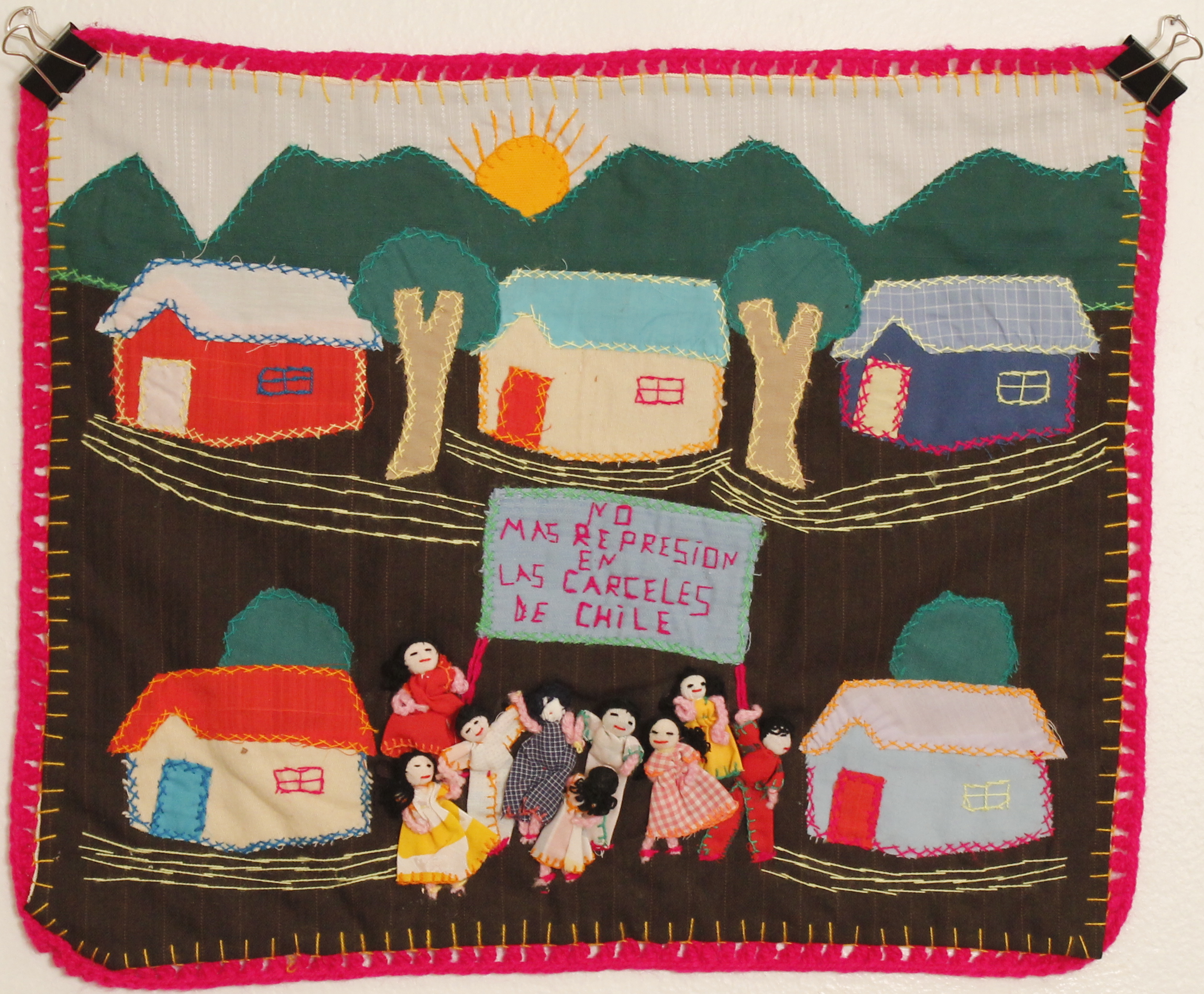 The most politically explicit apilleras did not reach Jubilee Crafts until 1987, after Melissa Moye had travelled to Chile. Moye had never before visited a country under a military dictatorship, and because she knew her main contact there (the Vicaria) was one of the more vocal opposition groups, she was nervous about Santiago’s passport control. To her surprise, she breezed through the airport checks without much delay. But when she arrived at her lodgings and opened her backpack, which had been through security screening at the airport, she was shocked to find an alarm clock placed carefully at the top. This was not her clock; the fear returned. After hearing about the incident, staff members at the Vicaria interpreted it as a subtle example of state harassment. They assured her that this was probably meant as a message to the Vicaria, not to her, to let the Vicaria know that they had wiretapped a call from Moye and knew of her travel details in advance of her arrival. By leaving the clock, state forces signaled that they could easily monitor and track the Vicaria’s international allies as soon as they arrived in Chile.